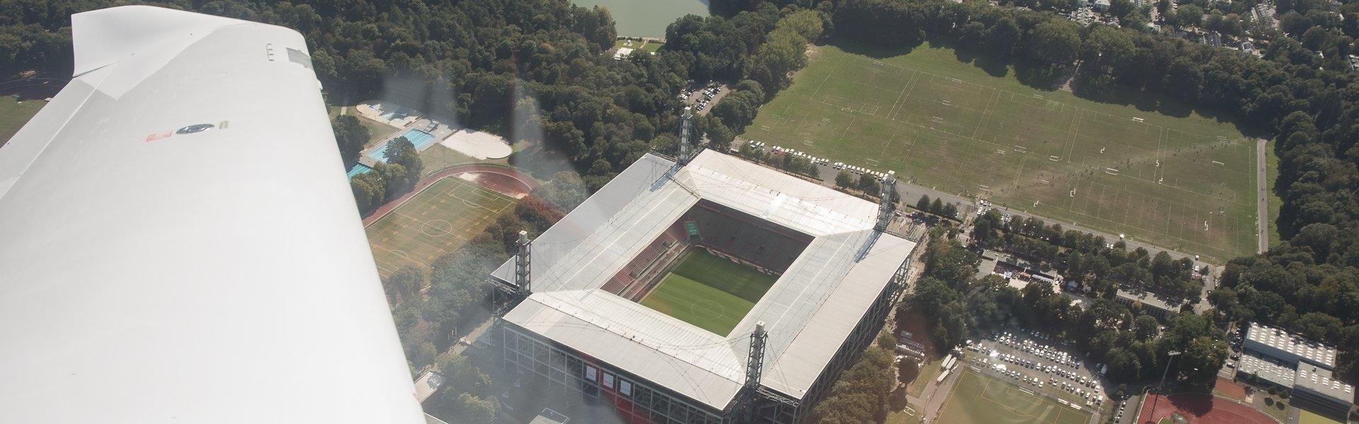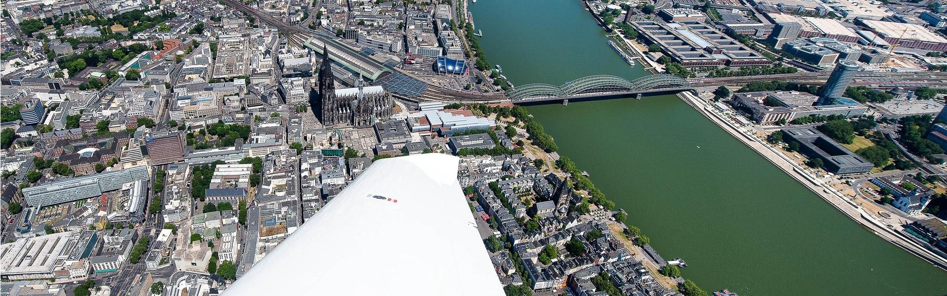 Der Flug führt am Rhein entlang über verschiedene rheinische Schlösser und Burgen.